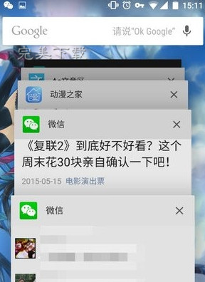 接着回到主界面,看上去微信似乎没有什么变化。当我们长按手机的Home键或多任务切换键,就会发现出现了2个微信界面。当你在微信中阅读文章时,只要呼出安卓的多任务菜单,就会发现文章页已经独立出去,成为一个多任务标签了。