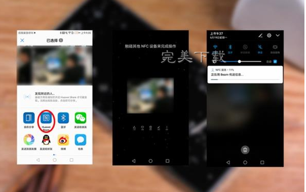 利用NFC传输数据功能与蓝牙类似,选择要传输的照片或文件,然后将两个手机的NFC区域触碰到一起就可以开始传输照片了!