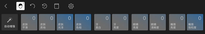 当你使用泼辣修图导入一张待编辑的照片时,应用会通过面部识别技术捕捉人脸。点击顶部的人脸按钮,即可开始使用美颜功能。