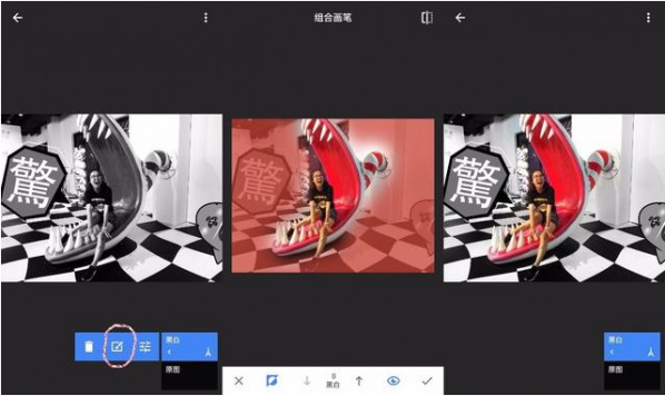 蒙版这东西神在什么地方呢,就相当于给一个图片预设部分加上你想要的效果,而不影响其他部分。举例:一张照片想要特殊的风格,黑白一下吧,感觉又有点单调,我想保留一部分色彩怎么做呢,这个时候,请跟着我左手右手一起打开蒙版,点击右上角的那个数字(即 历史动作),点击使用效果那里的小箭头,看到中间的小画笔了么,这就是我们的蒙版。然后把不需要黑白化的部分擦掉,哒哒,完成了!