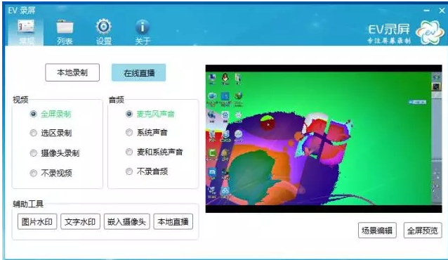 从这些设置中我们可以看出,EV录屏(EV录屏软件下载地址:https://www.www.gxdongfangshi.com(东方狮教程)/soft-38934.html)可以设置画质、帧速率,音质、光标属性等。还能直接录制成多种视频格式。特有的直播模式,还能将你的画面直播出去。