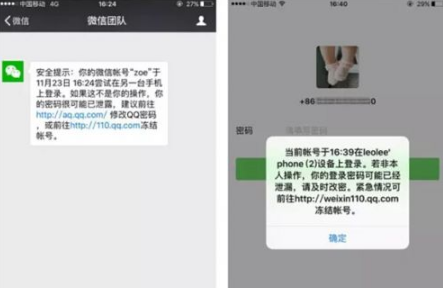 一般情况下,当你收到以下这两种提示,那么你的微信号可能已经被盗登: