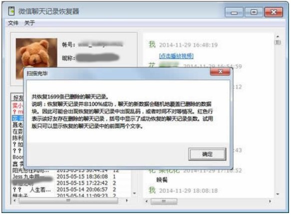 苹果微信聊天记录删除了怎么恢复?iphone微信聊天记录删除了怎么恢复呢?下面小编推荐的这个“微信聊天记录恢复器”软件能够恢复自己苹果手机上不小心删除的微信聊天记录,软件在底层对保存微信聊天记录的数据库文件进行提取并恢复,小编在对自己的苹果手机进行恢复后,成功找回了一千多条聊天记录,甚至包括几年前删除的一些聊天内容,恢复后界面如下所示:
