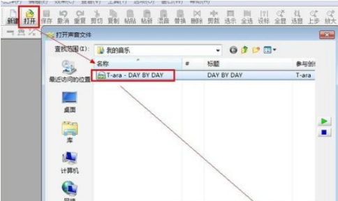 1、在主界面上单击“打开”按钮,然后选择要剪辑的音乐文件,然后单击“打开”