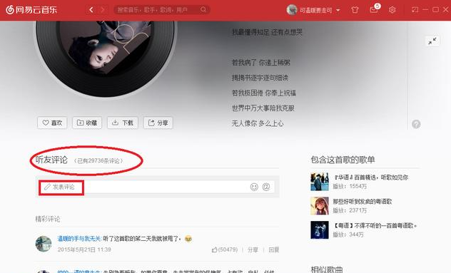 ③随便听一首歌,然后找到评论区进行评论。