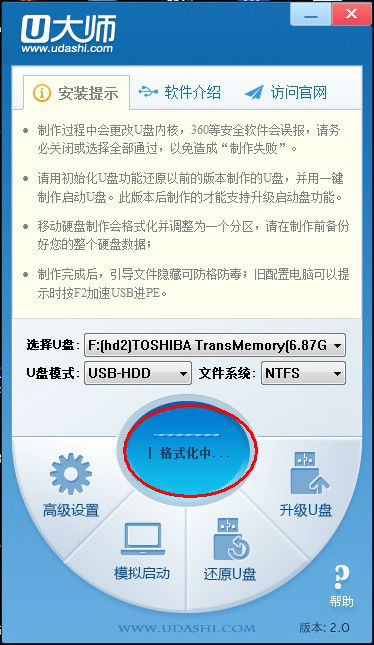 第二步:使用U大师“U盘启动盘制作工具”制作启动U盘