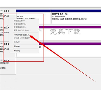 二、打开磁盘管理工具,将需要合并的硬盘转换为动态磁盘(PS:非系统磁盘)