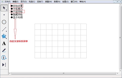 3.点击自定义坐标系菜单的“初始设置”和“只留网格”。