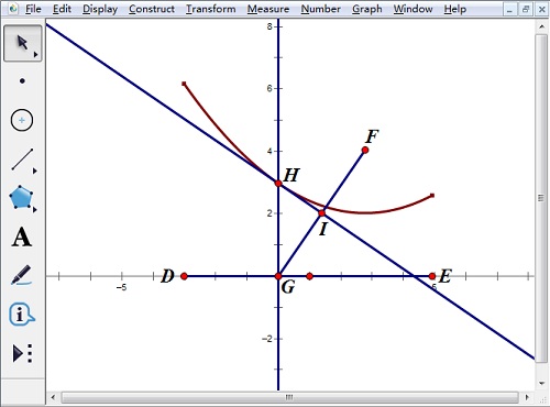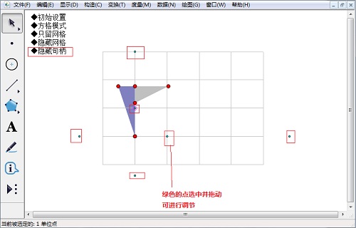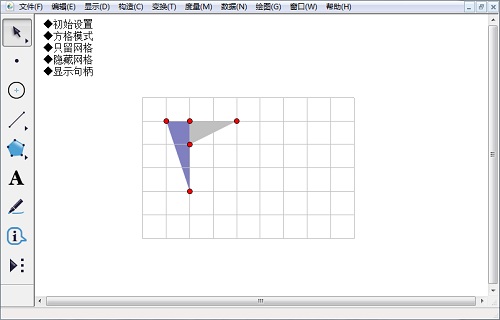 4.使用点工具,在网格上构造点,就能够精确地绘制在格点上了(下图中的三角形是选中三个点后构造三角形内部形成的)。