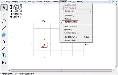 2.只选定原点,选择“绘图”——“标记坐标系”和“自动吸附网格”。