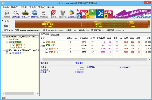 硬盘分区完成后,返回分区工具Diskgenius主窗口界面,此时我们就可以看到相应设置的分区,如下图所示: