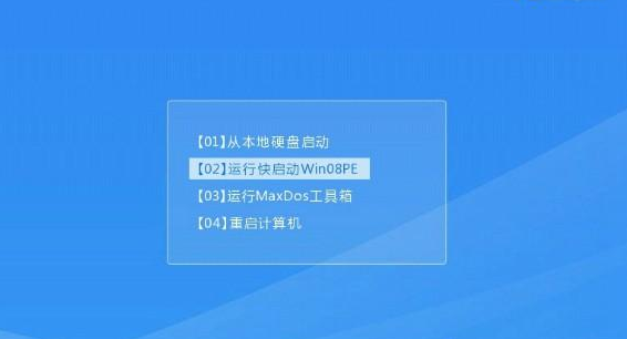 2、选择U盘启动回车进入快启动主菜单界面,选择“【02】运行快启动win08pe”,如图所示: