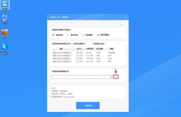 3、进入快启动win8pe系统后会自启快启动一键装机工具,点击需要安装系统的磁盘将其作为系统盘(以C盘为例),如图所示: