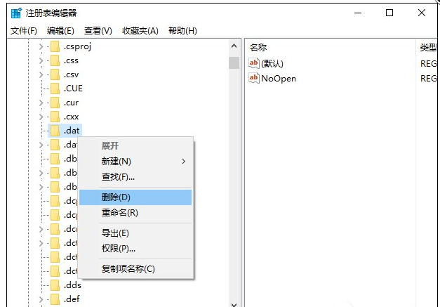 (2) HEKY_CURRENT_USER/SOFTWARE/Microsoft/Windows/CurrentVersion/Explorer/FileExts中的.dat