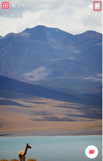 1、在柚子相机主界面中,点击右上角的“齿轮”按钮;