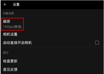 2、在“设置”界面中,点击“画质”;
