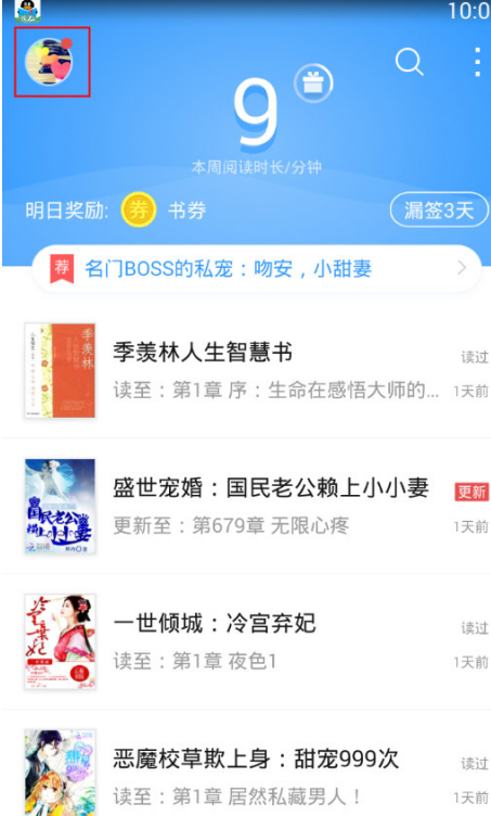 1、打开QQ阅读,点击左上角的“头像”;
