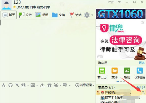 1、打开QQ群对话框,点击键头所指的编辑按钮。