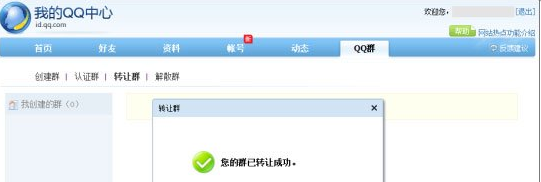 5、系统弹出窗口显示QQ群已转让成功,点击“确定”;