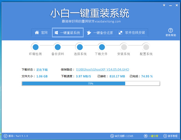 大家最关心的就是关于系统文件下载的问题了,这个小白做得也是非常棒的一点,本次测试基本可以稳定在几兆每秒的下载速度,最高可达10M以上!当然这个必须客户端的网络给力,不然的话几百兆每秒也是合理的。下载完毕后提示重启安装,基本省下的就是软件自动完成的了,一会功夫系统就可以重装完成!
