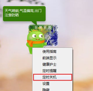 4、此时在桌面上可以看到一个可爱的娃娃,右键,选择弹出菜单的“定时关机”,如下图所示。