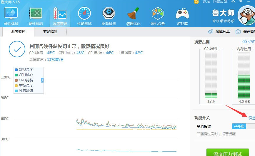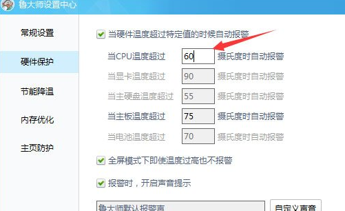 鲁大师温度报警功能怎么设置?