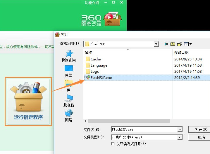 4、运行安全性不明的软件,点击它然后手动的添加想要在里面运行的软件,就OK了。另外清除沙箱内的文件,会将在沙箱内运行过的数据清空。