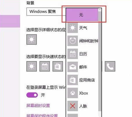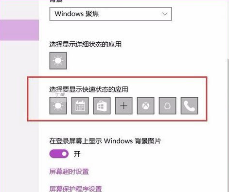 10、除了设置显示详细状态的应用,我们还需要设置显示快速状态信息的应用,按照同样的办法,点击页面中的“+”按钮,在应用列表中选择需要展示的应用并点击即可,如果想要取消其中某项应用的展示,在应用列表中选择“无”菜单选项即可。