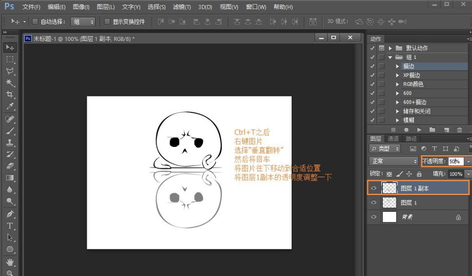 5、右键点击图层,选择“垂直翻转”,变化后移动到适当位置,调低“透明度”,按“回车键”确定变化。