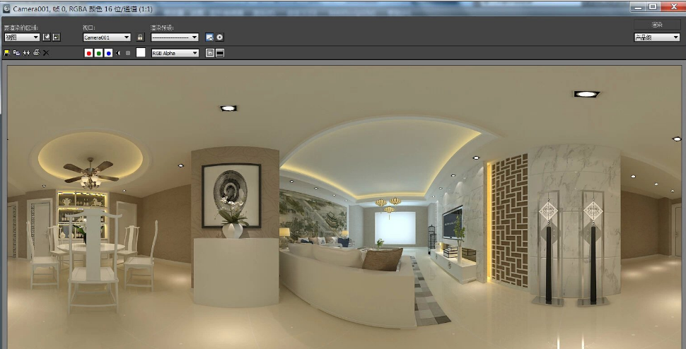 5、将渲染好的宽高比为2:1的360度全景图保存在本地,就得到了全景效果的素材,后面我们就可以将素材上传至得一些全景图制作工具来进行最后的效果制作了!