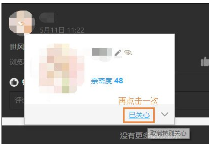 4、我们把鼠标移动到一个好友上方,在好友的面板上点击“已关心”,就可以取消这个好友的特别请关注,如图。