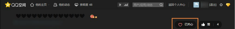 3、进入其QQ空间后,在其主页的右上角,我们看到一个已请关注的按钮,点击就可以取消请关注,如图。