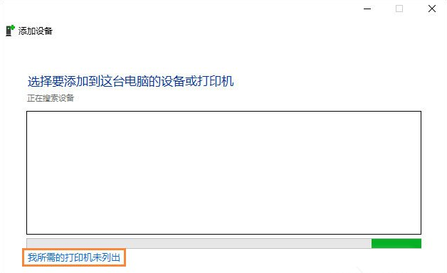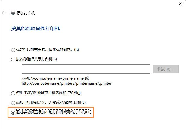 4、安装打印机类型:选择“我所需的打印机未列出”→“通过手动设置添加本地打印机或网络打印机(O)”。