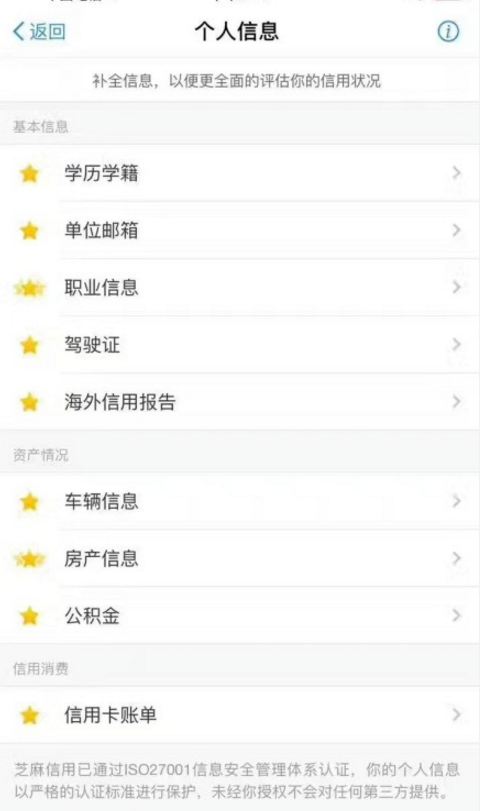 1、支付宝13星,如果你有这些所有真实信息,不存在下边所说的内容,直接简单上传绑定就可以的。对于没有这些资质,又想要试着提高芝麻分、贷款、借呗、花呗的,个人在去认证的时候难点就在于—海外征信、公积金、这个之前朋友圈也是刷了一阵儿,有点难度自己搞不了。