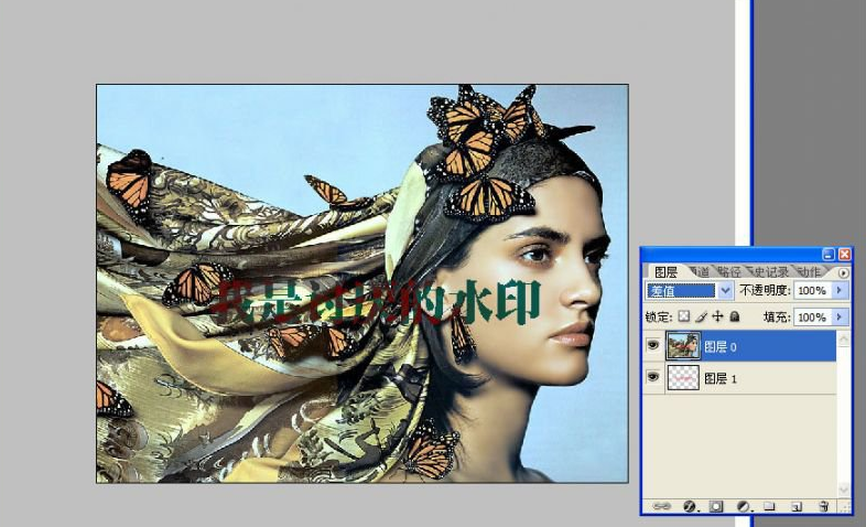 3、调整两个图层的顺序,将原背景层的图层模式调整为差值。