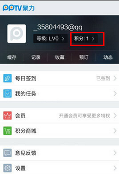 1、在手机上打开聚力视频,在PPTV【我的】界面点击软件上方【积分】。