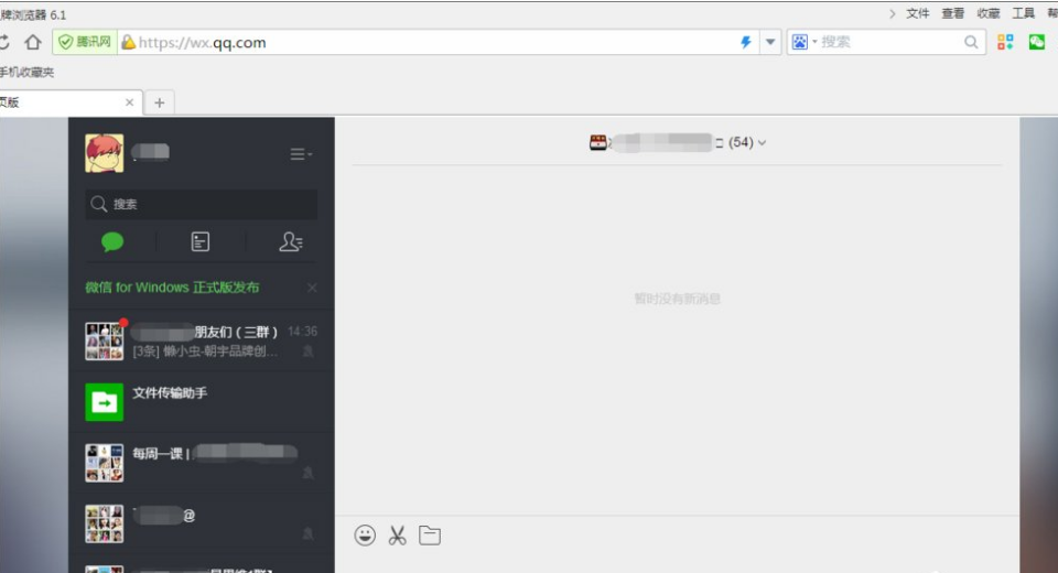 5、关闭重启浏览器之后再次点击微信图标,可以直接进入到对话列表栏,不用重新扫码,非常方便。