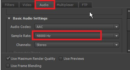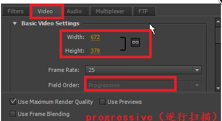 13、在图1设置视频参数,尽量设置为跟源素材一样大小,在数字上点击便可以输入数值,Field Rate设置为Progressive,其他保持默认值。在图2设置音频参数,音频频率要求相同,所以选择48000kHz。
