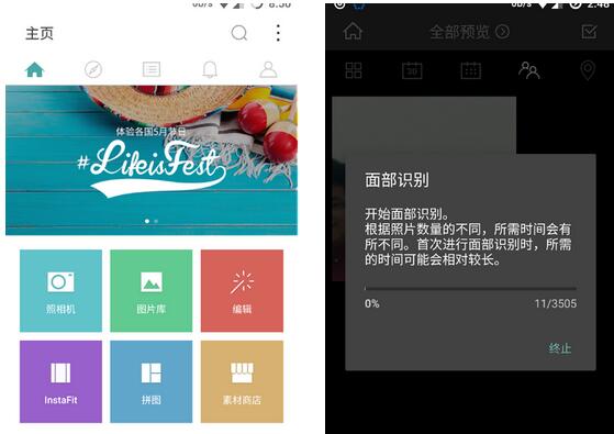 Cymera中文化非常棒,而且支持微博登录账号。它的界面乍看起来非常小清晰,而且是扁平风格不是各种APP常用的拟物立体风格,细看的话功能排列和交互做的非常棒。最重要的是所有的操作都有一种迷之流畅感,和平时系统动画过渡时间一样帧数却高不少,使用起来非常愉悦。