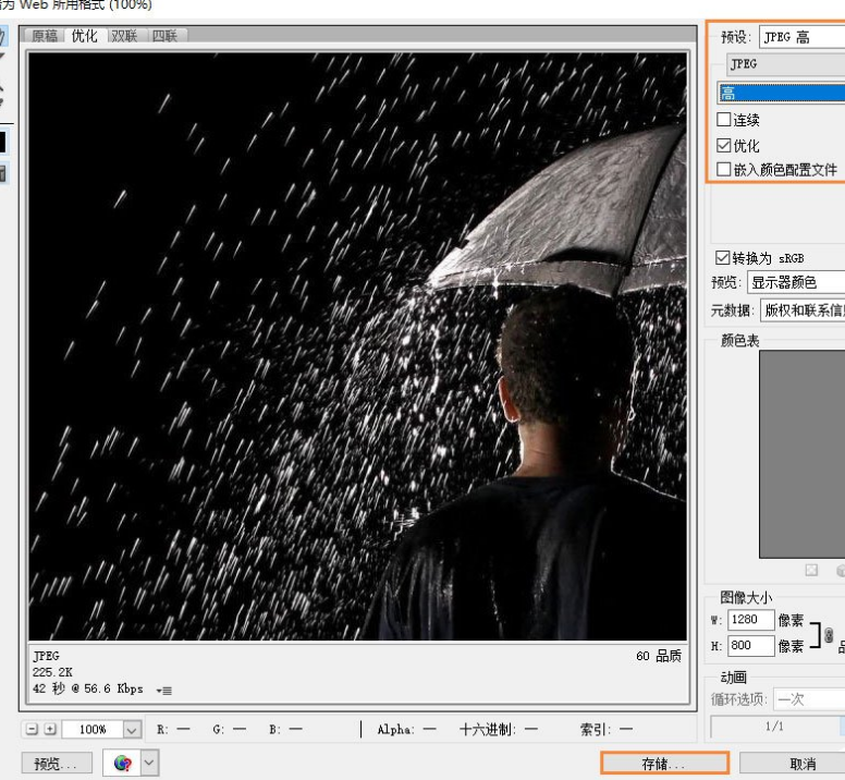 4、在弹出的图像界面中,点击”存储“按钮,PS工具完成图像的优化和处理;