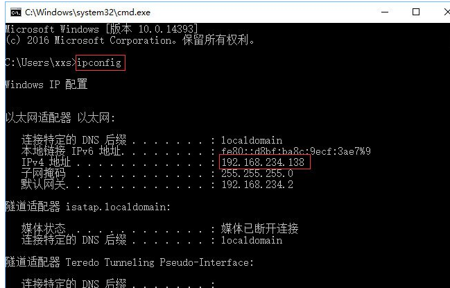 12、运行CMD命令→输入ipconfig→回车键→记下IPv4地址;