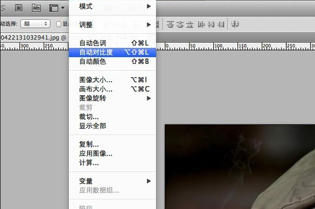 打开素材复制图层,之后打开菜单中的图层选择自动对比度。