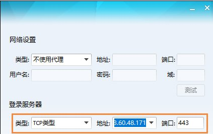 1、在登录页面选择设置—选择登录服务器,类型为TCP登录;
