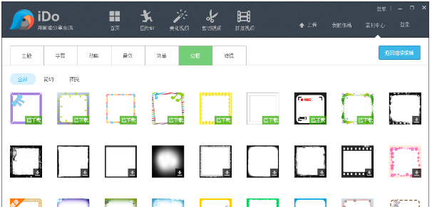 4、如果觉得这些边框不够多,那么我们还可以点击“下载更多”,然后在优酷iDo的边框素材库中下载更多的边框素材;