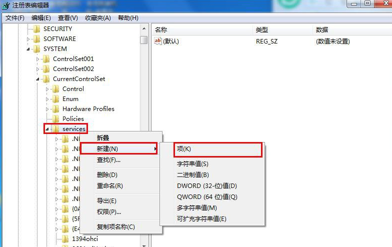 注:若没有找到nvata文件,可以右键点击services新建一个子项将其命名为nvata 。