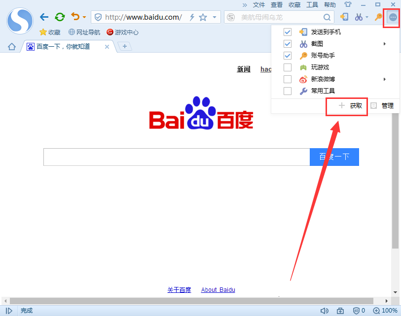 1、首先我们打开搜狗浏览器,然后根据下图打开搜狗的扩展中心: