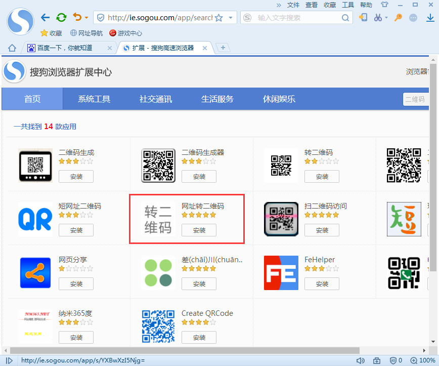 3、接着我们在搜索结果中找一个“网址转换二维码”的插件点击安装即可;