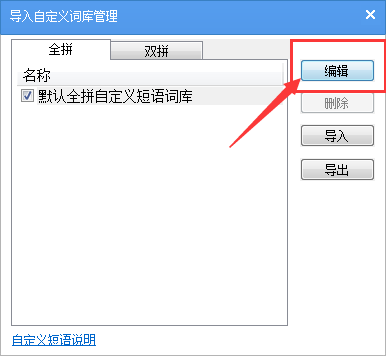 4、之后在自定义短语设置界面点击“编辑”就可以添加我们想要设置的短语了。
