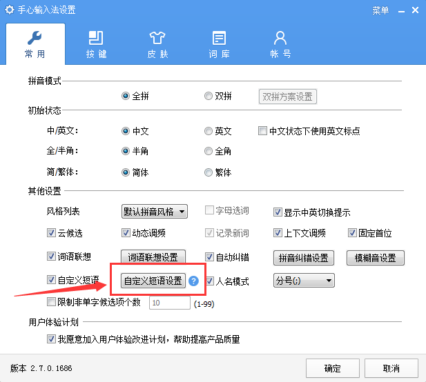 手心输入法怎么添加自定义短语?