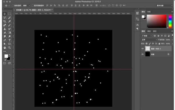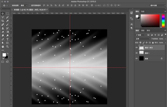 3、拉横竖两条辅助线,刚好在中间的位置。